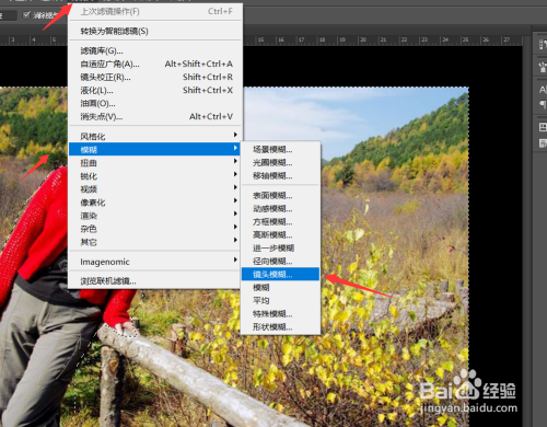 这样除了人物本家儿体以外的区域都被选择出来了,然后我们选择上方的滤镜,选择恍惚,选择镜头恍惚。