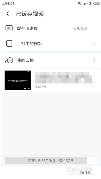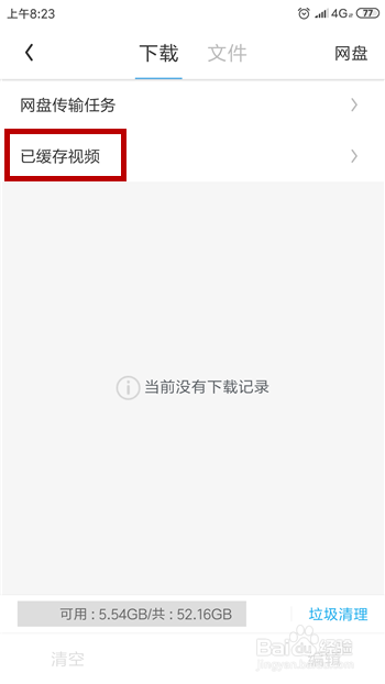 点击后会打开下载界面,在这里可以看到【已缓存视频】,点击这个选项。