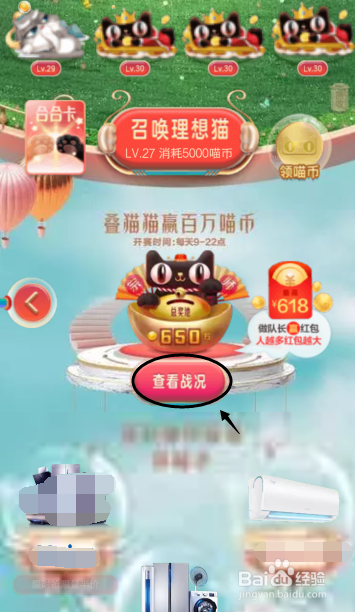 在合猫猫页面,点击左下方的“叠猫猫”的【查看战况】。