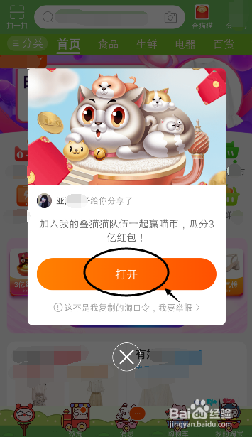 进入淘宝,就会呈现以下页面,点击【打开】。