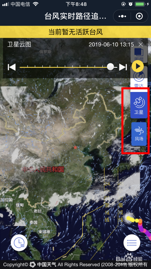 下面这个图,选择 卫星 和 风场 后,显示风场的卫星图。