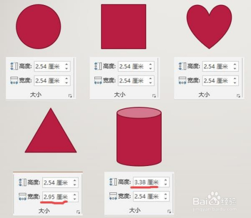 第二种方式:选择好要插入的外形之后,在合适的位置单击一下鼠标,一般环境下就会获得一个“正外形”,而且这个外形大小仍是一英寸的(2.54厘米)。好比你选择的是卵形,单击一下鼠标获得的是直径2.54厘米的正圆形。(注重下面那个三角形和圆柱体的宽度和高度不是了。)