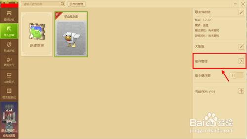 打开网易版我的世界游戏启动器,然后点击“插件中间”。