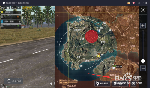 随意点击地图中的任何位置,可以在地图上作为标识表记标帜点,队友也可以看到这个标识表记标帜点,标识表记标帜颜色和本身编号颜色一致,如图: