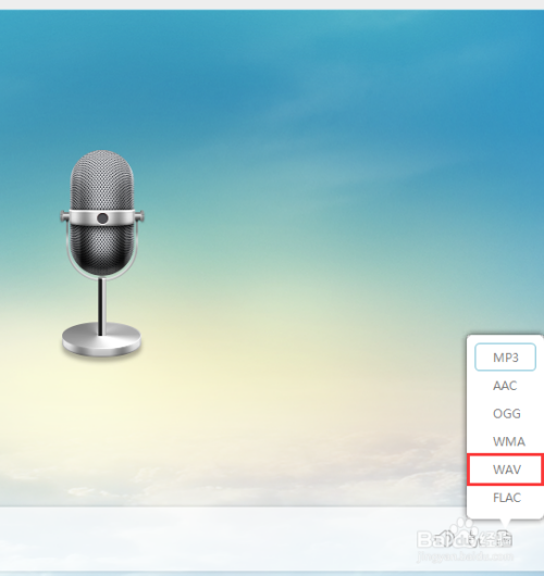 这时,就会标的目的上弹出选项,点击.wav格局,就可以设置好了,如图所示