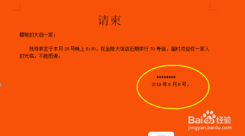在右下角处写上本身的名字和日期,这样一封请帖就建造好了,我们可以点击打印键就可以打印出来。