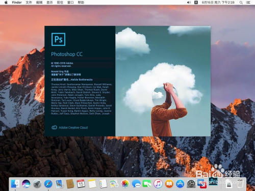 打开PS后,点击屏幕左上角苹果标记右侧的”Photoshop CC“