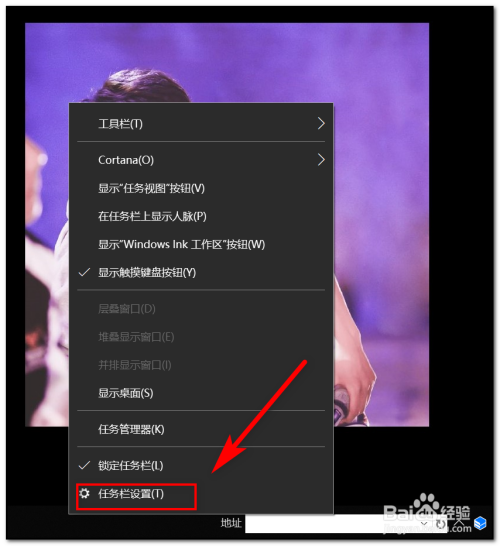 在使命栏空白处右击选择“使命栏设置”
