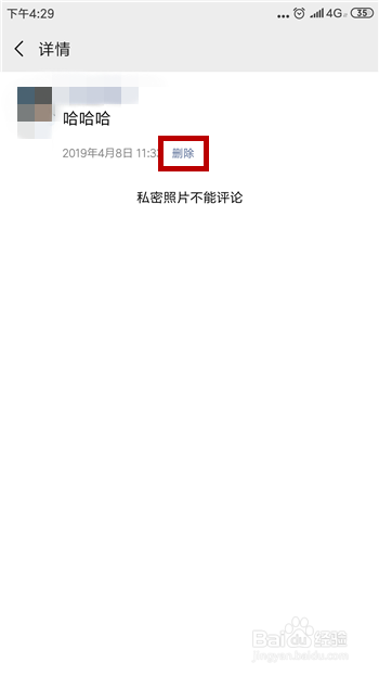 接下来会打开这个朋友圈动态的具体界面,点击动态右下角的【删除】。