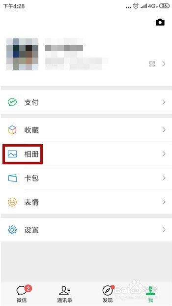 打开微信的小我中间后找到此中的【相册】功能并点击打开。