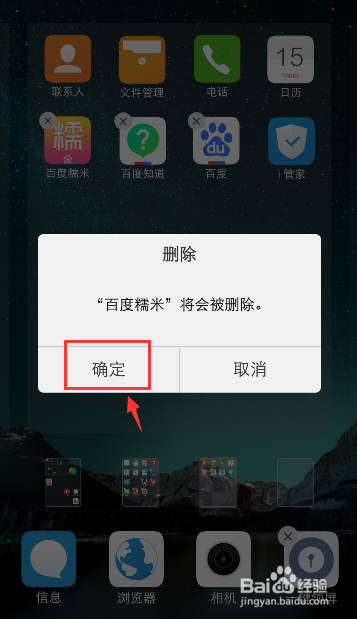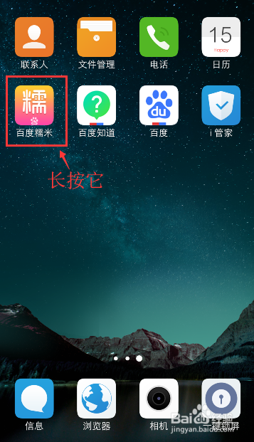 在手机桌面,长按软件,好比:百度糯米。
