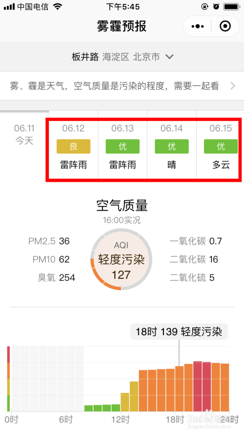 别的,我们还可以点击响应的日期查询除了当日外将来四天的雾霾环境。