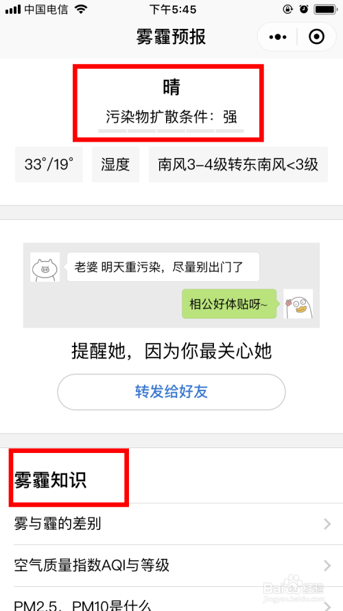 下面要跟大师分享的是如何经由过程微信查看雾霾预告环境。