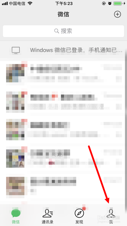 首先在手机上打开并登录微信App,并在首页面点击右下角的 我 。