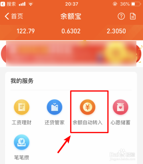 进入余额宝界面后,我们选择余额主动转入的图标进入。