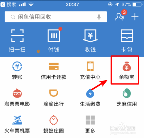 打开手机中的支付宝应用后,点击余额宝的图标进入。
