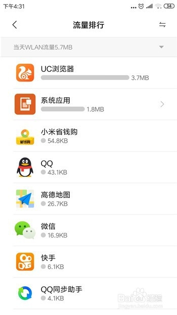 打开系统应用后可看到手机自带的每项应用的数据流量的利用环境。