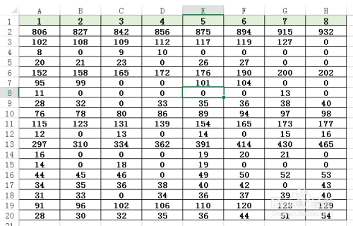 如下图所示,是一张用Excel建造的表格,可以看到里面有很多空白单位格,现要将表格中的这些空白单位格中都输入0,如何快速做到呢?