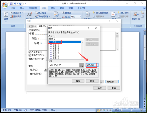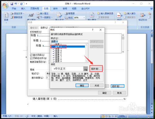 完当作后,返回点窜样式窗口,点击目次层级【目次2】,再点击“点窜”。