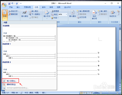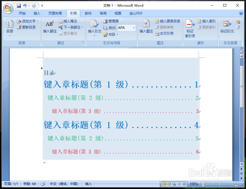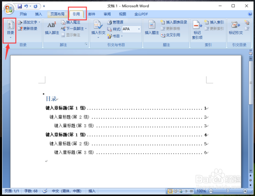 要零丁设置这些目次层级的字体,先点击东西栏的【引用】,再点击【目次】。