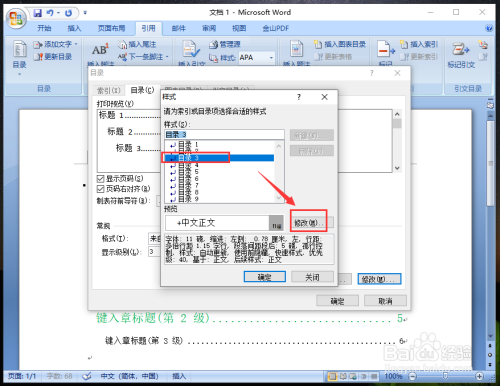 完当作后,返回点窜样式窗口,点击目次层级【目次3】,再点击“点窜”。