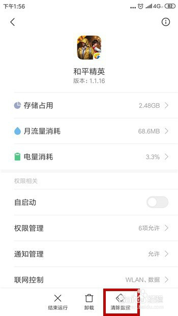 在手机的应用办理中点击打开和平精英的办理界面,然后点击右下角的【断根数据】。