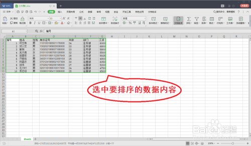 然后,用鼠标光标选中要进行排序的数据内容。