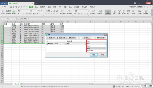 在东西栏中,找到【排序】按钮,选择【排序】-->【自界说排序】。