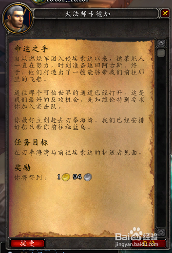 当玩家品级达到110级的时辰,就可以在破裂群岛的达拉然(新达拉然),在紫罗兰城堡找到卡德加,他会给玩家“命运之手”的使命。