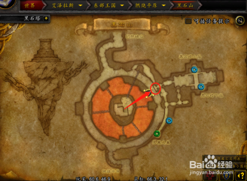 进入黑石山内部,黑翼之巢的副本进口在图示位置;