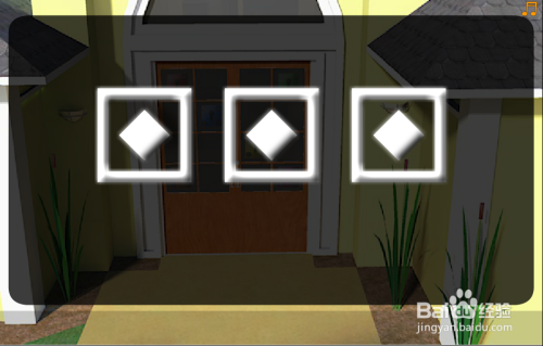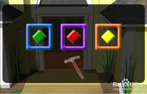场景1。蓝色钥匙打开蓝色门锁,按照窗子上的颜色提醒,调整图形颜色,获得铁锤。