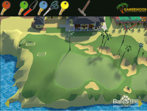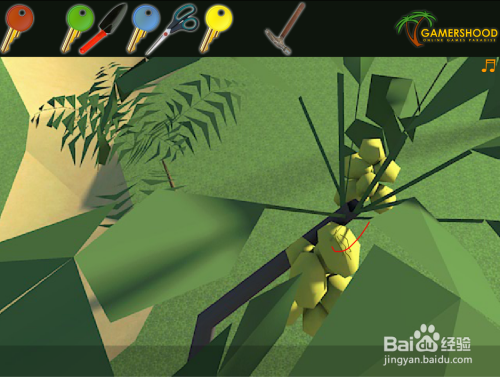场景3。用铁剪剪取椰子,获得橙色钥匙。