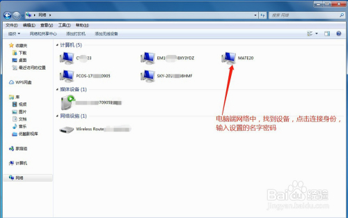 电脑端收集查找设备,找到点击毗连登录可查看共享资料