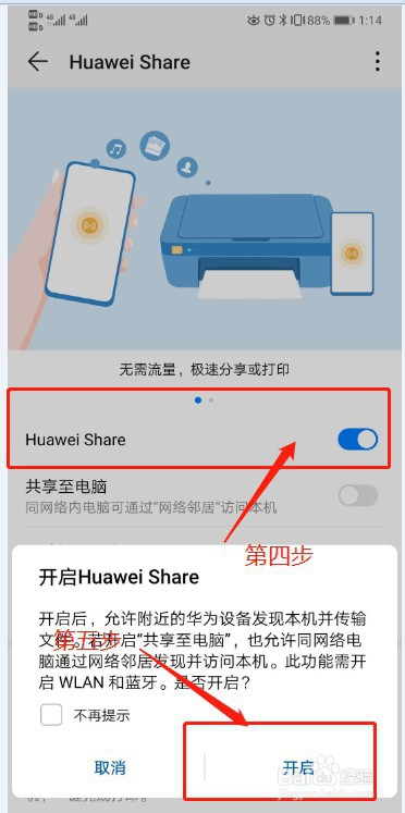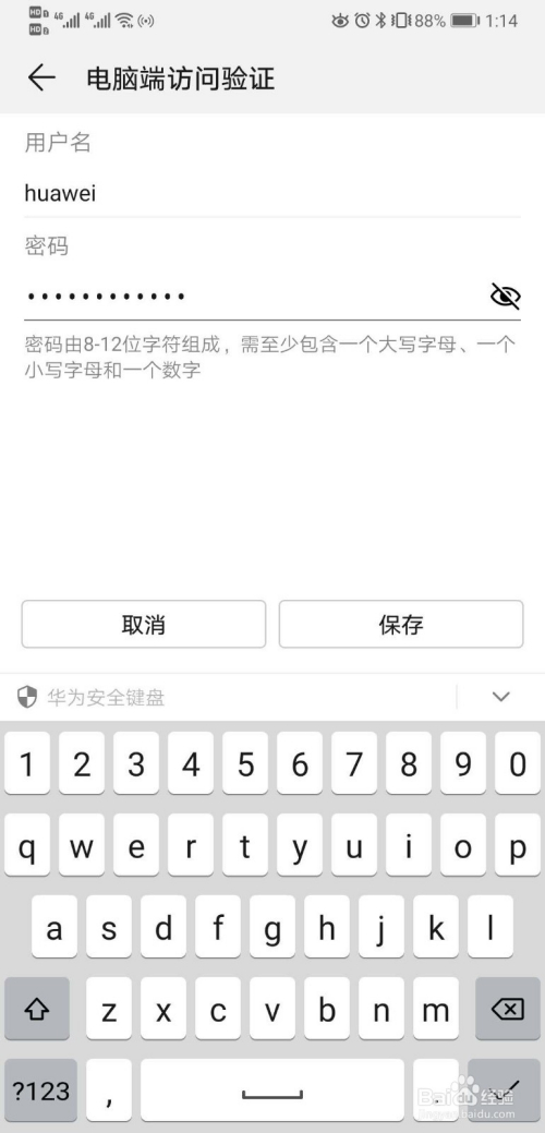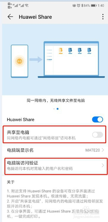 打开huaweishare,点开共享至电脑,设置电脑端显示名字电脑端拜候共享验证密码