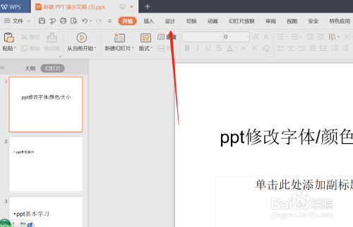 点击上方菜单栏“设计”