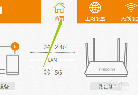 输入之后我们看到有一个首页的的处所,点击进入到路由器的首页。