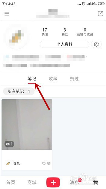 然后在本身的小我中间里的【笔记】下方点击打开要删除的笔记。