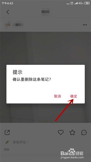 然后系统会有一个小提醒,问我们是否确定要删除这个笔记,点击【确定】。