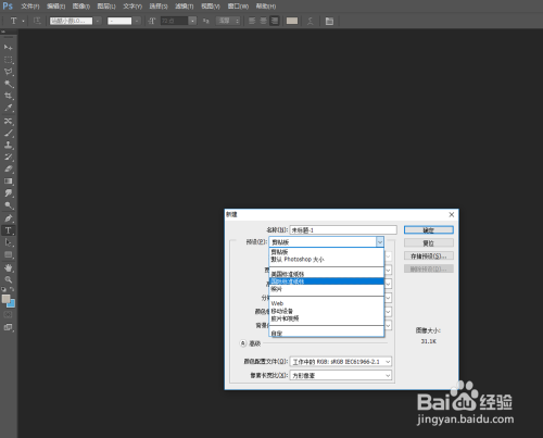 打开ps软件,新建白色画布,预设选择【国际尺度纸张】茗茗本人利用的是Adobe Photoshop CS6,其他版本界面也相差不大。