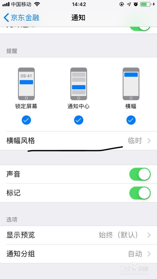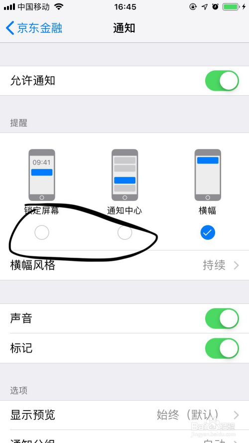 返回上级菜单可以看到锁屏屏幕和通知中间是开启的,我们点击√号打消提醒