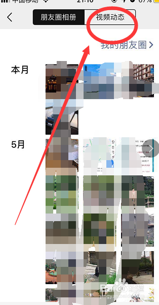 在相册界面,可以看到朋友圈相册和视频动态,右上角点击视频动态,进入视频动态界面