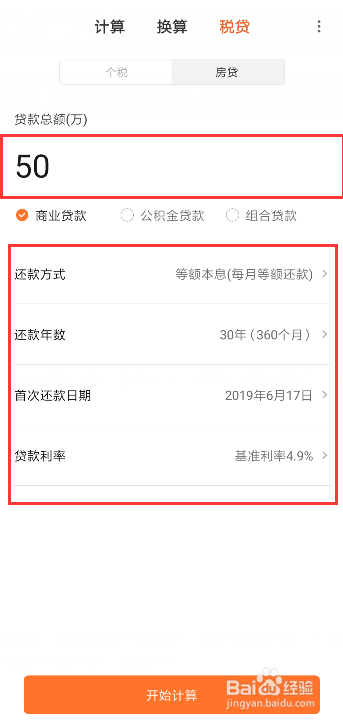 这时,你就会看到各类贷条目选项,好比贸易贷条目,公积金贷条目,还有组合贷条目等,各类还条目参数都,如:还条目体例,还条目年数,初次还条目日期,贷条目利率等,如图所示