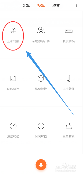 然后,来到计较器的界面,点击上面的换算的选项,如图所示