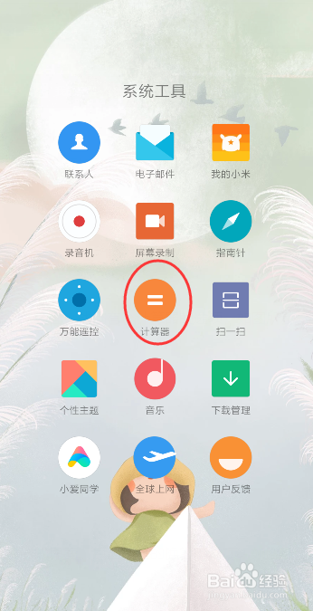 来到系统东西夹的页面,找到有个计较器的选项,如图所示