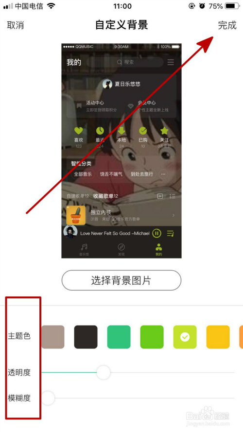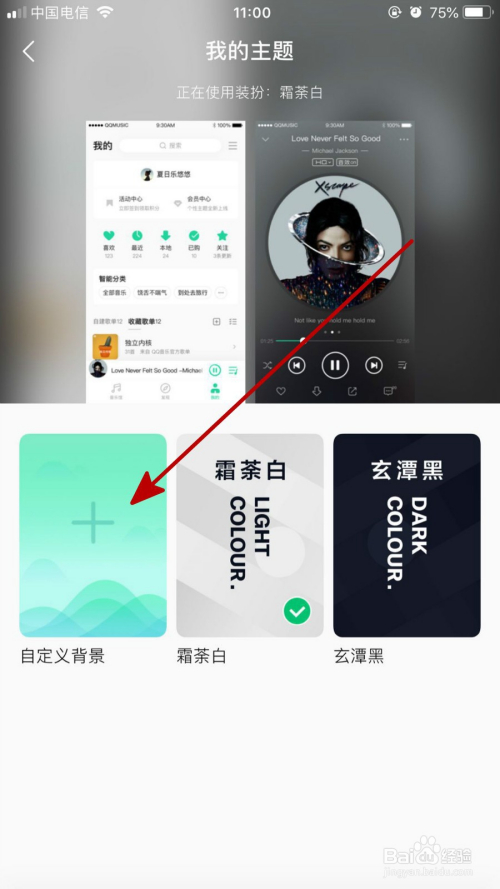 我们在用QQ音乐播放音乐时,为了让播放界面更炫酷在这里可以选择自界说布景设置。