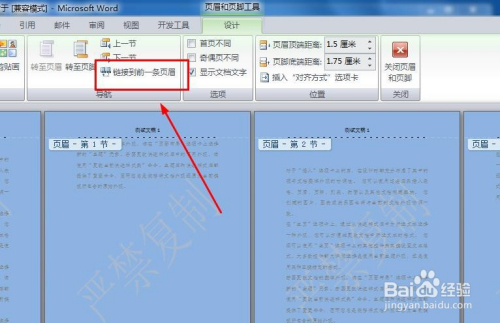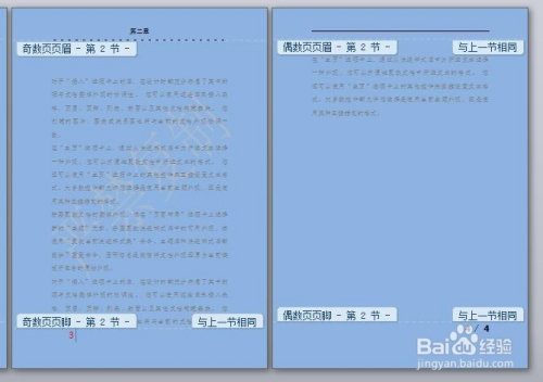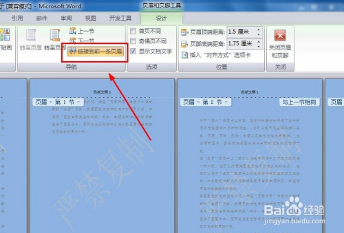 在设计窗口中,打消“链接到前一条页眉”按钮的选择。然后就可点窜第一节和第二节,设置分歧内容了。这样分歧章节分歧页眉的要求就达到了。