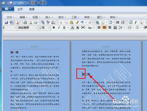 首先,将光标定位到要分章的位置,如第二章的前面。