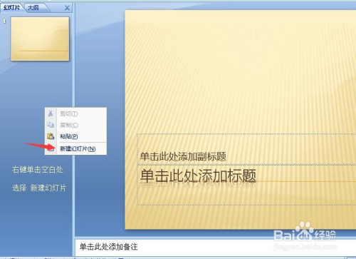 在左侧空白处 右键单击鼠标 即可新建幻灯片