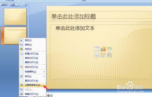 右键单击第二张幻灯片左侧缩略图 选择→设计布景格局