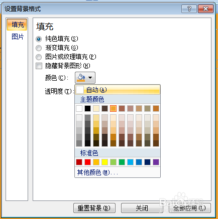 纯色填充选项列表 可以直接选择喜好的颜色填充布景